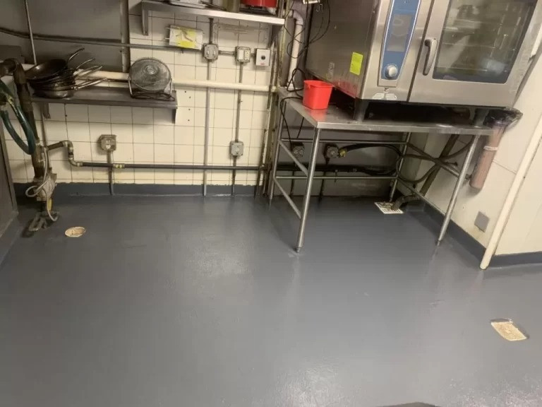 In food preparation areas, cleanliness is non-negotiable. Floors must resist moisture absorption and prevent the buildup of bacteria in cracks or joints. Seamless flooring surfaces are particularly effective because they simplify cleaning and reduce contamination risks. Safety is equally important, as wet or greasy floors can quickly lead to accidents. High-quality kitchen flooring solutions help maintain traction under demanding conditions, protecting staff and reducing liability for business owners.